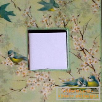 Найдоступніший і простий метод - це декупаж. На спеціально підібрану плитку клеять виконаний на плівці або кальці малюнок. До нанесення малюнка дуже важлива правильна укладка плитки. Роздруковане зображення після наклейки потребує додаткового захисту, для цього відмінно підійде безбарвний лак. Даний спосіб виготовлення панно з плитки своїми руками досить простий і зручний, але не підходить для приміщень з високою вологістю.