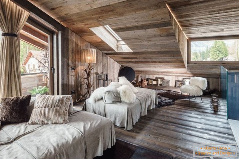 Цікавий дизайнерський хід полягає в застосуванні комбінованих шпалер в інтер'єрі спальні.
