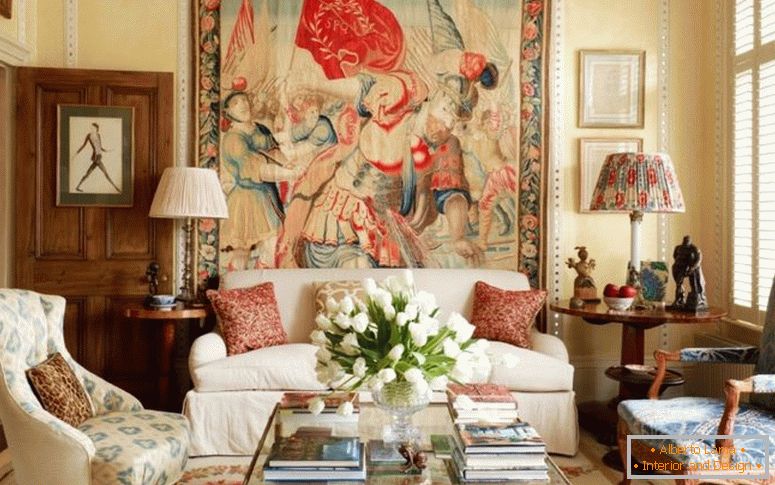 Решта меблі, покриті лаком і виготовлена з такого ж матеріалу або з дерева чорного кольору, відмінно поєднуються один з одним. А розкішний білий диван, пухнастий білий килимок, а також дуже світлі стіни є чудовим контрастом для темних поверхонь.